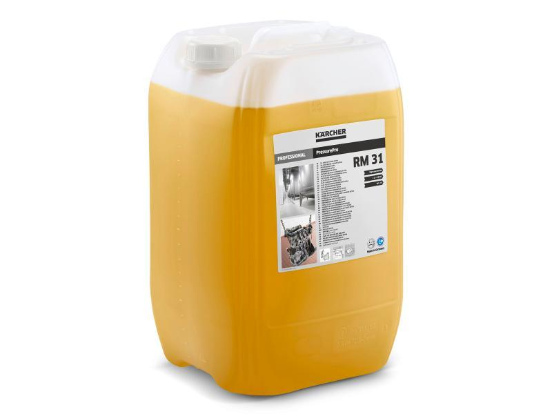 Le détergent RM31 KARCHER en format 20L est un dégraissant alcalin très concentré spécialement formulé pour une utilisation avec nettoyeurs haute pression, en nettoyage intensif industriel, agricole ou de transport. Il élimine en profondeur les salissures les plus tenaces comme l'huile, la graisse, le goudron, la suie et les résidus de combustion, et reste efficace sur une large plage de températures, jusqu'en mode vapeur à 150 °C.
