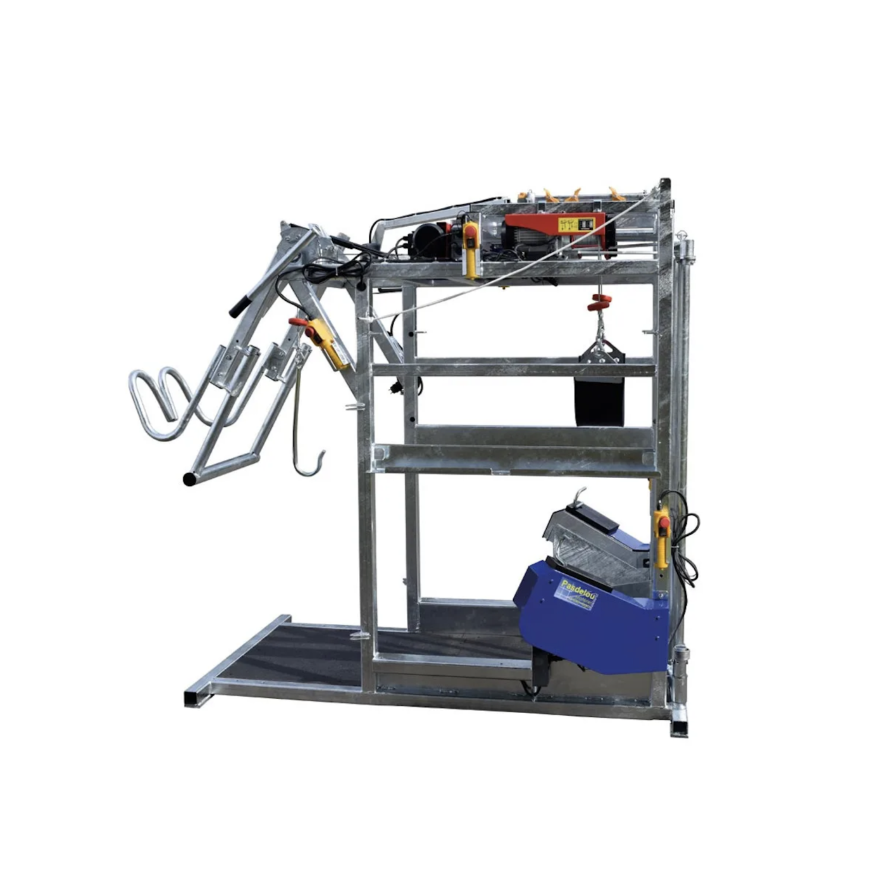 - d'un système de parage pattes arrière motorisé, treuil à drisse 220 V / 1020 W / IP 54 avec une télécommande. Drisse équipée d'un crochet de prise au jarret,